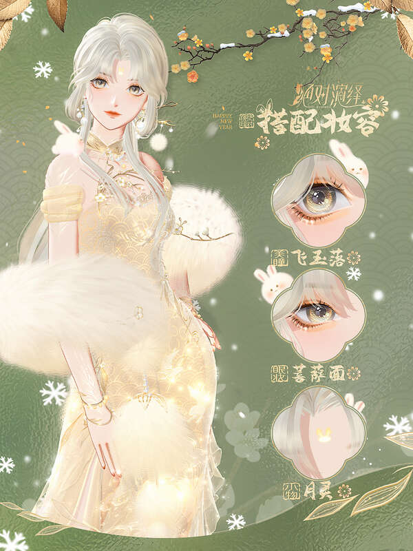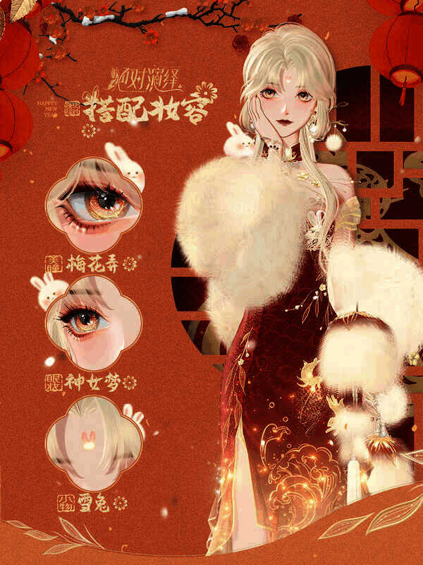 除了雍容大气的旗袍,新妆容同样让人惊喜,化妆师以“卯兔”为元素,打造出了一套兼具俏皮与端庄的新年妆容!橙红色美瞳“梅花弄”带来不可忤逆的气场,风雪间不经意的一瞥,便能望之生畏。