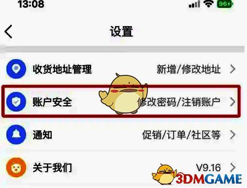 2、在列表中找到【账户安全】,点击打开。
