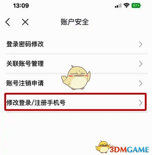 3、在列表中找到【修改注册手机号】,点击打开。