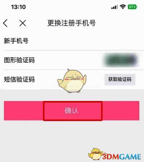 6、在打开的页面中,输入新手机号和验证码,再点击【确认】即可。