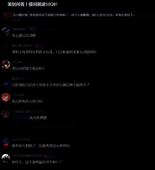 接下来就迎来了本次茶话会的重头戏,制作人现场回答玩家问题。音乐人们果断抓住与制作人大大零距离对话的机会,在频道中纷纷提出自己的疑问。