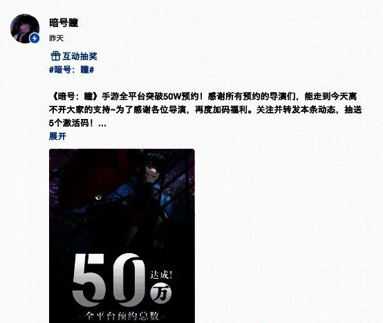 值得一提的是,实机演示结束不久,《暗号:瞳》在其官方社区宣布其全平台预约已突破50W。