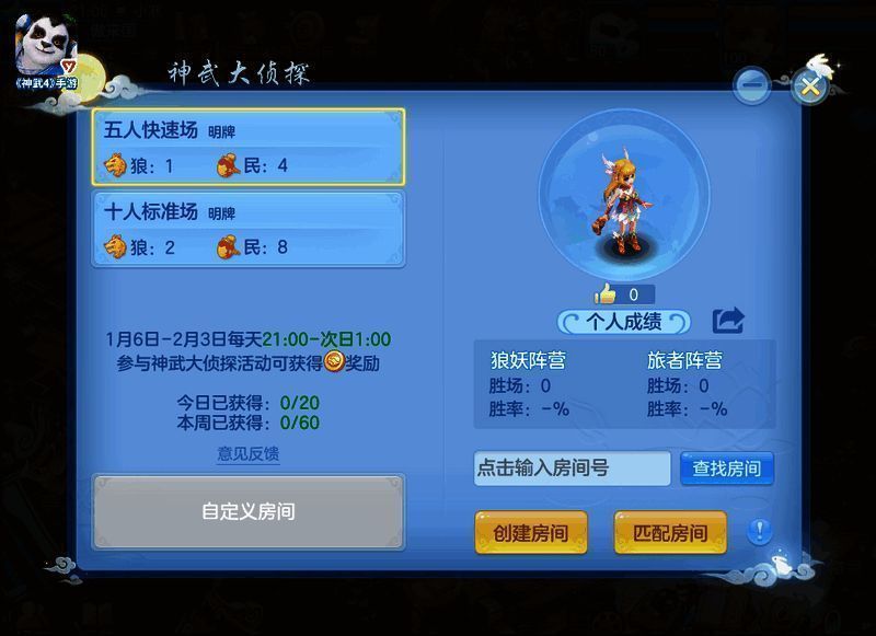 “侦探大赛”活动将于2023年1月6日至2023年2月2日开启,活动时间内,每天21:00-次日1:00参与神武大侦探活动可以获得社交积分奖励。非活动时间仍然可以参与神武大侦探玩法,但是无额外奖励。