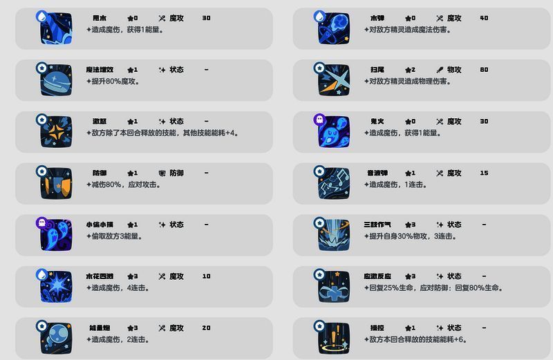 圆号鱼所拥有的技能针对实战需求来决定,比如在战斗时,玩家需要输出类型的技能,这时候可以选择甩水,水弹,水炮,虹光冲击等等,毕竟这些技能能够有效地压制敌人的群体,让敌人受伤。另外还涉及到强化型的技能,干扰型的技能和特殊类型的技能。