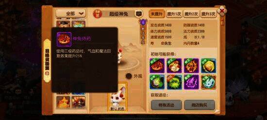 从超级神兔的技能、内丹和套装来看,它是一只非常强力的血神兽,有着极为出色的辅助能力。我们相信,在之后的战斗中,有了超级神兔的存在,玩家能放心大胆地使用药品,这将大大提升辅助型玩家的作战能力!