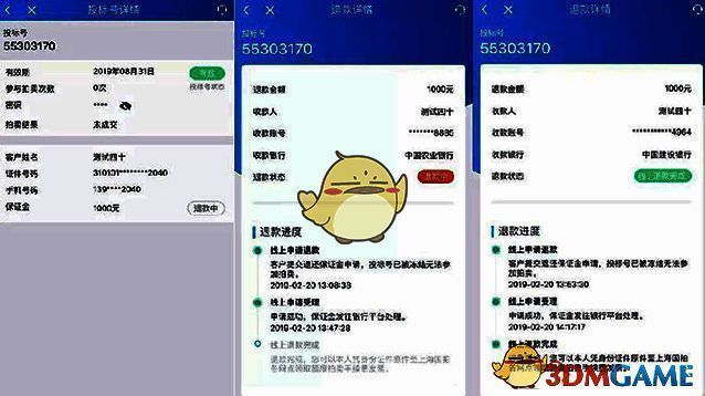 4、进入退款阶段,可查看退款进度,查看投标号详情,即可查看退款进度。