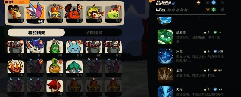 晶石蜗在选择性格时需要玩家选择可以增加生命以及物防和魔防这几方面的性格,技能携带蜡质膜、冰雹、地刺以及天光。