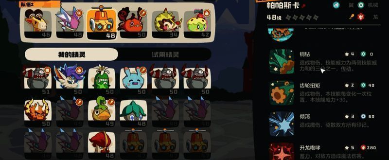 帕帕斯卡小编这里推荐大家选额固执这个性格,最好的选择增加生命和物攻以及物防或者是魔防性格,技能上面选择刚钻、齿轮扭矩、倾泻和升龙咆哮这四个技能,帕帕斯卡在携带技能这块小编要说的是大家一定要按照这个顺序来携带,否则刚钻的效果打不出来。