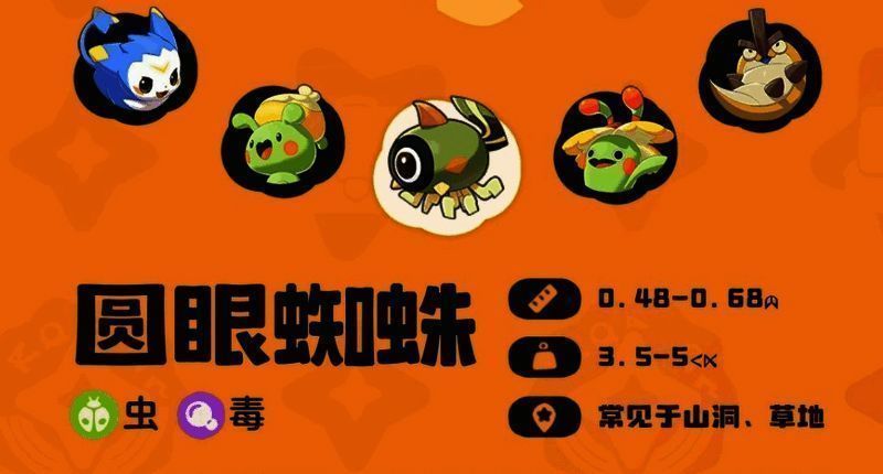 圆眼蜘蛛顾名思义就是一只蜘蛛,但是它看上去十分的可爱,属于昆虫系里面的一个精灵,拥有剧毒,在战斗的时候直接使用技能可以产生控制的效果,也能够让敌人的速度变慢。一旦圆眼蜘蛛成年之后,它织网的速度比较快,在战斗时可以利用知网来捕获敌人。