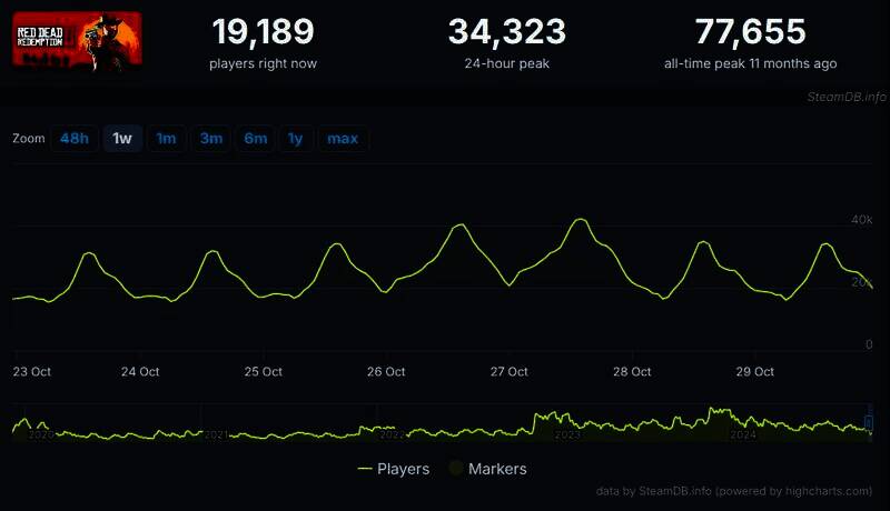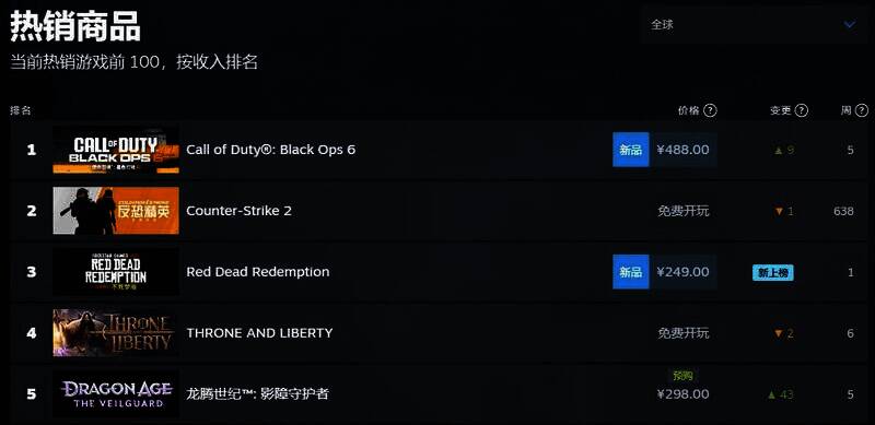 值得一提的是,《荒野大镖客:救赎》在Steam发布数小时后,就吸引了77655人进入游戏。并且该作在Steam热销榜上排名第三,仅次于《使命召唤:黑色行动6》和《反恐精英2》。