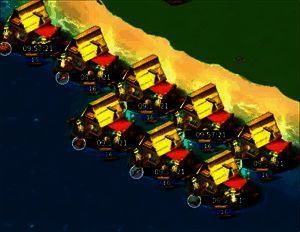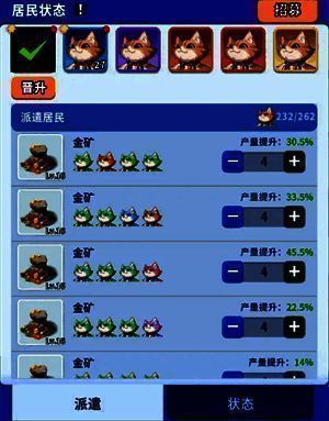 游戏中的农田、渔场、金矿与战役地图中的村庄、木材、石料、铁矿资源点都需派驻居民来提升产量。
