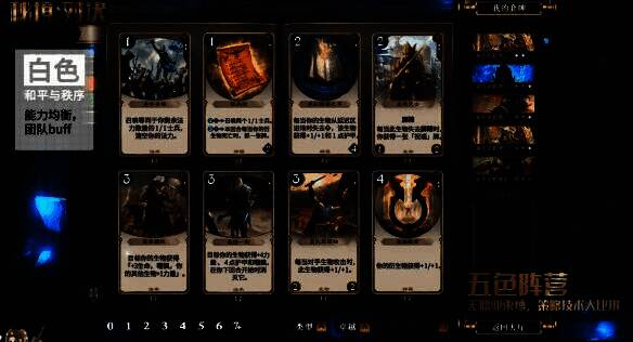 白色卡牌是和平与秩序的颜色,擅长防守和治疗,拥有最强的团队buff能力。以天使圣团和崇拜天使的宗教团体炽翼教派为主要势力。
