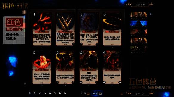 红色卡牌是狂热和破坏的颜色。擅长快速而直接的进攻,还拥有强大的解场能力。由战士的国度——伯棱克利、被青金塔放逐的火法师和采石场当地的劳工们组成的灰烬之子等几大势力构成,试图改变命运、永不屈服、充满激情是红色的代名词。