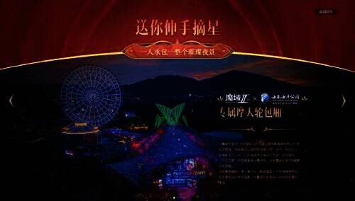 为助力旅游行业加快复苏,《魔域手游2》与海昌海洋公园深度合作,在旗下位于三亚海棠湾之心的「三亚海昌梦幻海洋不夜城」内的「三亚之眼摩天轮」上,特别定制《魔域手游2》专属主题摩天轮包厢,诚邀幸运玩家登上88米高的黄金观景圣地,尽情俯瞰三亚璀璨夜景。