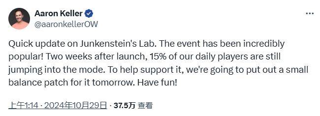在此前的万圣节更新中《守望先锋2》推出了一个新PvP模式:“怪鼠实验室”,根据游戏总监Aaron Keller的消息称,该模式非常受欢迎,在推出两周之后,目前仍有15%的日活玩家在游玩该模式,为了支持它,开发团队将在明天为其发布一个平衡补丁。