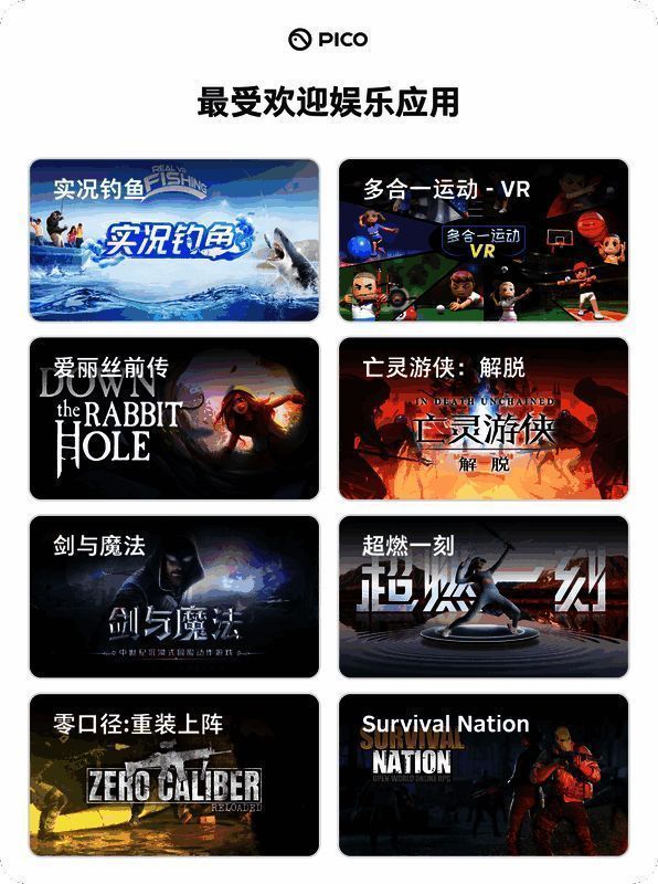 作为头部XR品牌,PICO始终致力于帮助VR开启大众化之路,而丰富且优质的内容和应用生态,是吸引大众消费者购买VR、使用VR的关键。近两年全球VR技术日渐成熟,产品快速迭代,PICO作为国内最完善的VR内容平台,亦在持续完善内容生态,积极加速与第三方的合作脚步,并在自制内容方面大力投入,致力打造国内应用最丰富、最优质的VR内容平台。迄今为止PICO应用商店已拥有超过200款国内外优质的VR应用。