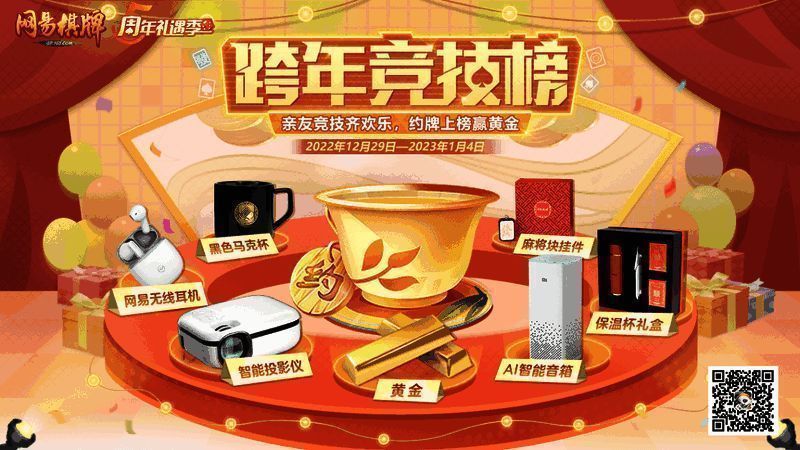 亲友竞技齐欢乐,约牌上榜赢黄金!《网易棋牌》手游【跨年竞技榜】活动火热进行中!12月29日至1月4日,牌友们可通过参与指定牌局获取竞技分,上榜赢取黄金及超多实用家电,排名越靠前,奖励越丰厚。这个冬天放肆玩!