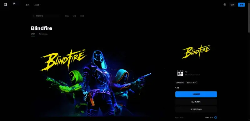Steam平台需要先安装Steam平台,之后注册一个账号登录,然后搜索“Blindfire”进入商店购买页面。