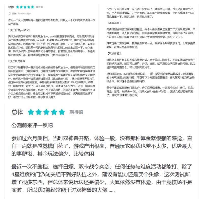 游戏上线前,TapTap就有不少预约用户对游戏进行了分析和评论,测试用户也积极分享了测试的感受:画面质感、竖屏方式、妖灵养成,都是打动玩家的因素。