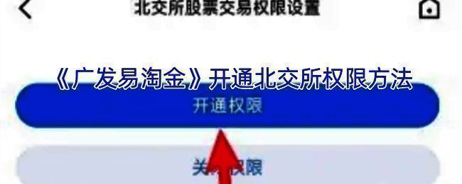 要在广发易淘金中开通北交所账户权限,用户需打开广发易淘金APP,登录后点击底部菜单栏的“发现”,接着进入“业务办理”页面,然后在下方或上方找到并点击“北交所股票交易权限设置”,最后点击“开通权限”即可完成开通。