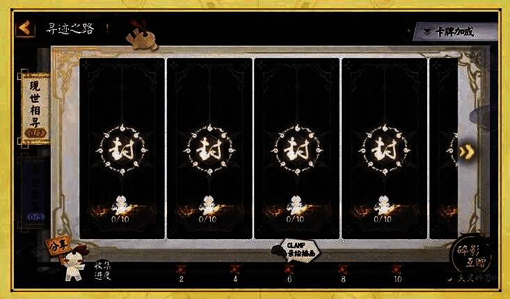 ※【现世相寻】:活动期间,每天将开放1张「式神牌」的收集战斗。按照行踪线索前往平安京各处寻找卡牌,战斗胜利后获得对应的式神牌碎片,集齐10个「式神牌·碎影」即可完成1张式神牌的收集。共有7张式神牌可通过【现世相寻】收集。