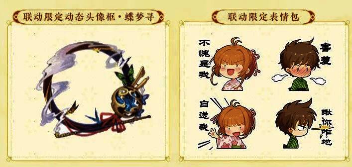 「联动限定动态头像框·蝶梦寻」限时上架联动活动商店,在活动中购买升级「寻遇伴手礼」后完成任务提升等级还可解锁获得联动限定表情包。