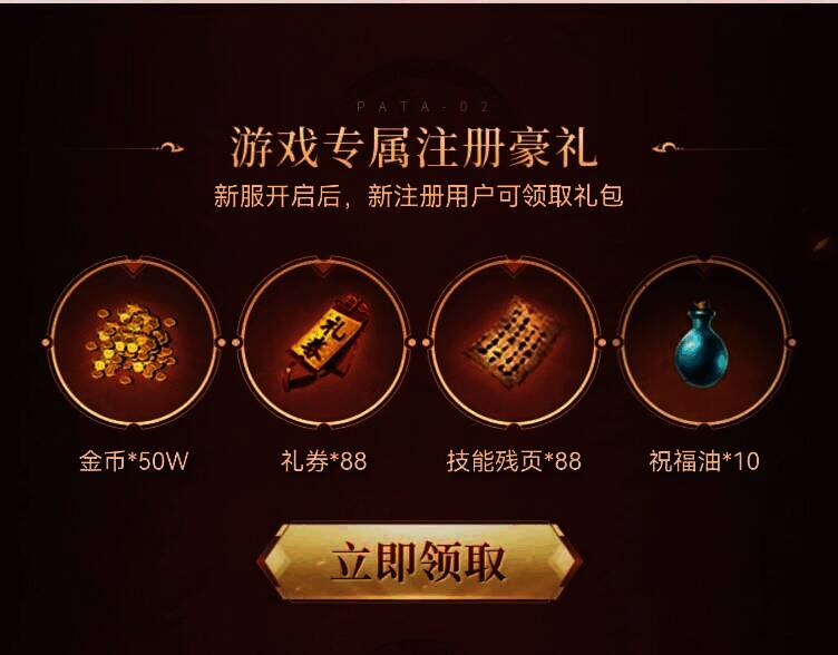 活动期间,新用户注册游戏即可领取注册礼包。