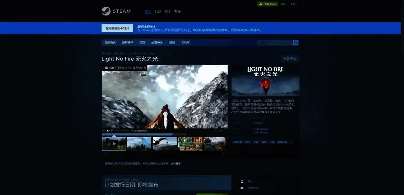 可以去Steam平台下载,地址是:https://store.steampowered.com/app/2719590/Light_No_Fire/。