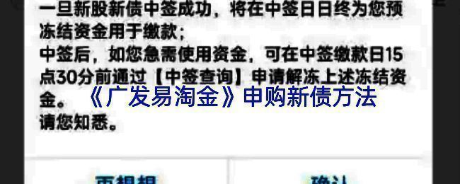 要在广发易淘金中申购新股或新债,用户需打开广发易淘金APP,登录后进入“交易”页面,点击“新股新债”选项。接着,选择“普通账户申购”,勾选要申购的新股或新债,点击“立即申购”或“新股申购”按钮,并按提示完成后续操作即可。