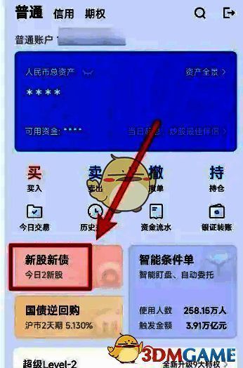 3、打开新股新债页面,点击底部的【普通账户申购】