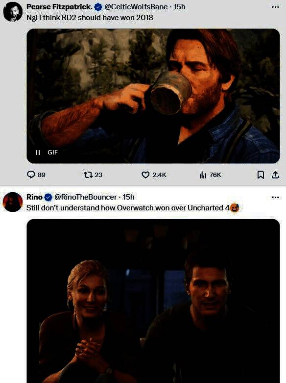 评论区有玩家认为:“2016年年度游戏应该是《神秘海域4》”“2018年年度游戏应该是《荒野大镖客2》”。关于2024年年度游戏,有人认为《寂静岭2:重制版》或《宇宙机器人》将夺得桂冠,但更多人认为《黑神话:悟空》当之无愧是今年的年度游戏。
