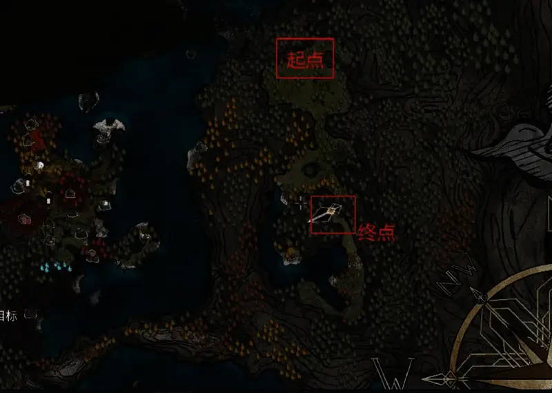 解锁飞行之后再来。滚球的起点和终点见下图,追着它跑到结界上然后打掉就行。