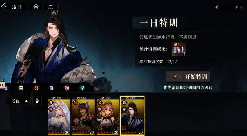 再来看看武将特训这个选项,它可是为玩家们提升神级武将实力的绝佳途径哦,在这里大家可以精心为自己的神级武将安排特训课程,每次进行特训的时候,都需要耗费一枚养魂铃,经过一次特训之后,就能够获得某个武将的魂石,这些魂石的作用是进行角色突破,一旦突破成功,武将的品质就会变得更好。