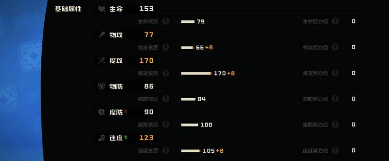 白金独角兽是属于光属性的精灵,它的特性是目空,非光系技能威力提高25%。这个特性非常独特,因为大多数精灵都是自身属性技能威力高,而白金独角兽的这个特性则完全相反。资质很高,总资质604,生命79,物攻66,魔攻170,物防84,魔防100,速度105。拥有目前所有精灵中极高的魔攻属性,在性格方面,小编推荐加魔攻减少物攻,,这样做到极致。这样来看,保守性格是最合适的选择。