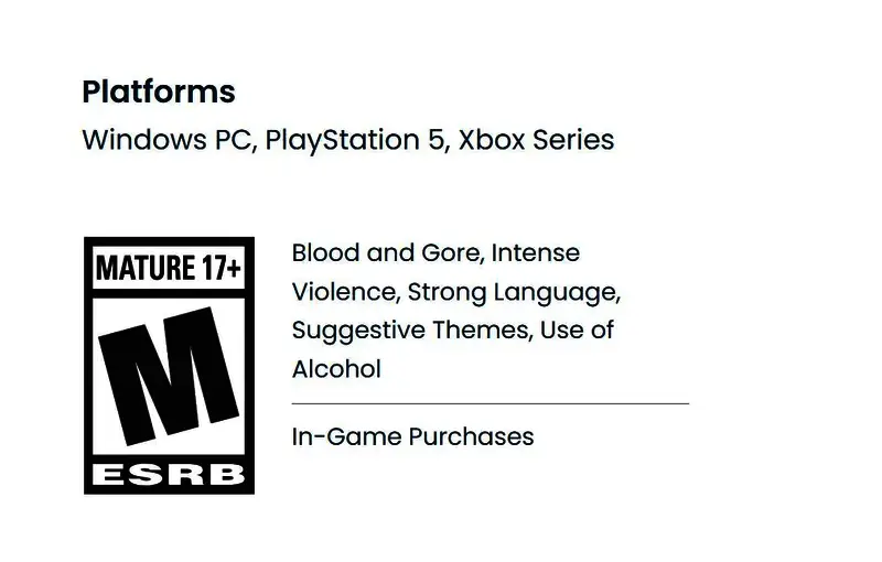 《四海兄弟:故乡》ESRB分级Mature 17+,含有血腥、暴力、脏话、暗示性主题、酒精等内容,不过ESRB也提到该作有“游戏内购买”。