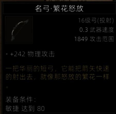 弓中极品之一,极快的攻速,不过在这里刷繁花弓有点不花钱,去打追风boss,sl出想要的词条的繁花弓,追风boss在哪可以看我主页攻略。