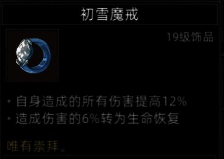 神器般的饰品,直接所有增伤12%,而且还有6%的吸血,注意6%只是最低的,可能有13%甚至14%的吸血。不愧拥唯有崇拜之评。