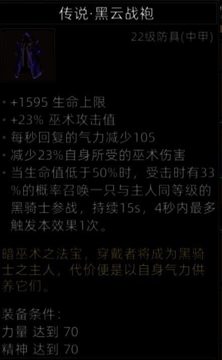 在蓝药丸充足的情况下,是个极品防具,目前最高加巫力攻击百分比的装备,极大的提高巫术伤害。