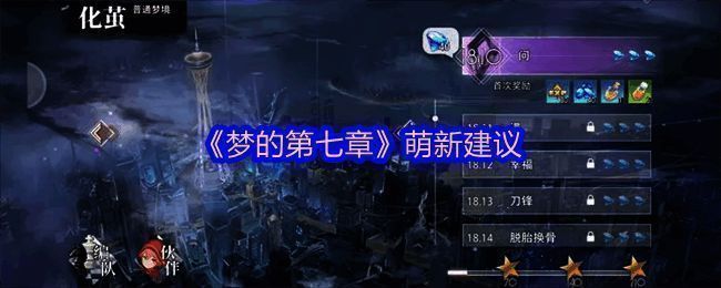 汇集中日顶级知名画师及全明星CV阵容,在梦境世界收获熟悉的感动,身临其境剧情走向,每个伙伴独特人设形象,精美立绘,搭配动态立绘效果,让你体验一场视觉盛宴!下面是小编给大家带来的《梦的第七章》萌新建议,感兴趣的小伙伴们一起来看看吧。