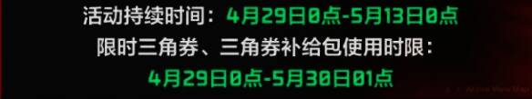 1、三角洲行动开启了全新的瓜分三角券的行动,从4月29日持续到5月13日。