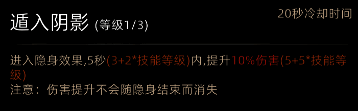 其中,遁入阴影是10级斩杀BOSS必备技能,必学。