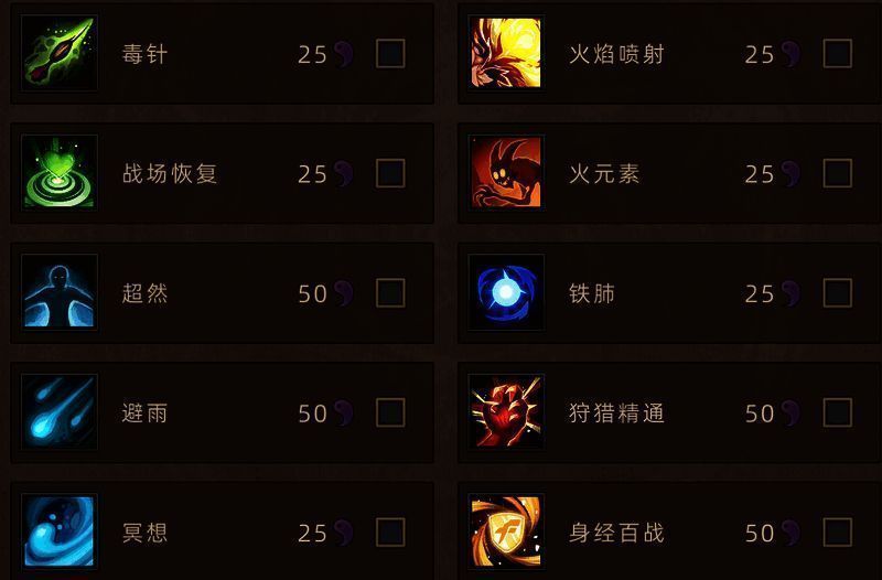 毒针、火焰喷射、战场恢复,没有也不影响游戏。