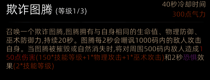 他技能描写很奇怪,他说有你一模一样的血和防御。但实际上BOSS打你几下你就死了,BOSS打图腾能打够20秒图腾都不会破。
