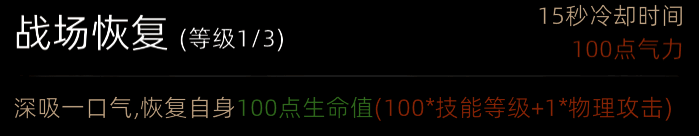 能让你持续坚挺的技能,虽然需要气力,但高级后就没所谓。