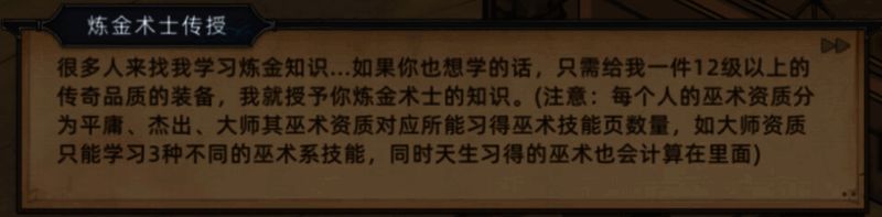 大师可以学习三种巫术,并全部点满;杰出能学习两种巫术;平庸则只能学习一种巫术;无巫术资质则无法学习巫术。