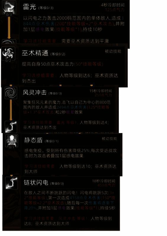 技能:雷巫术有3个主动、2个被动。