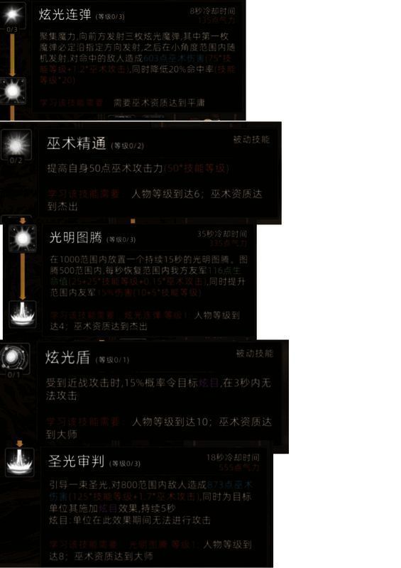 技能:光之巫术有3个主动、2个被动。