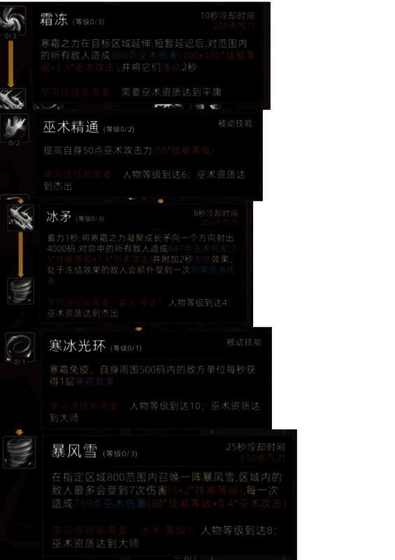 技能:冰之巫术有3个主动、2个被动。