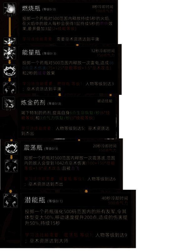技能:炼金术士有4个主动、1个被动
