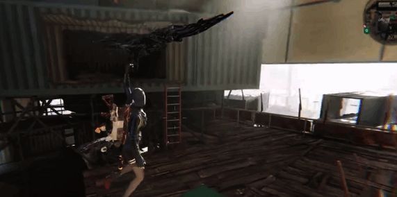 玩家可以从楼顶的缺口下来,直接绕到仓库的对面,在货架下面还可以找到第4个装备箱。接着朝南的光柱走过去,如果没有提示权限互动,则意味主线还没有推进。在描完锚点之后可以进入到白色大仓,走上2楼之后拿到最后一个武器箱。